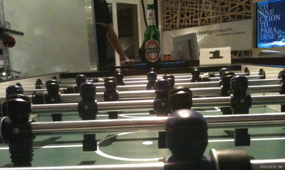 Als Microsoft gestern Abend dann zu einem Kickerturnier in München gerufen hat dachte ich mir, was solls, schaust es dir mal an was die Jungs vom Windows Phone 7 so zu bieten haben. Als bekennender iPhone 3Gs User seit mehr als zwei Jahren kann man sich ja auch mal umschauen und seit dem letzten iOS5 Update , bin ich ständig am Apps beenden weil irgendwie alles sehr langsam geworden ist, obwohl ich immer noch die gleichen Apps wie vorher verwende, aber wieder zurück zum Kickerturnier.